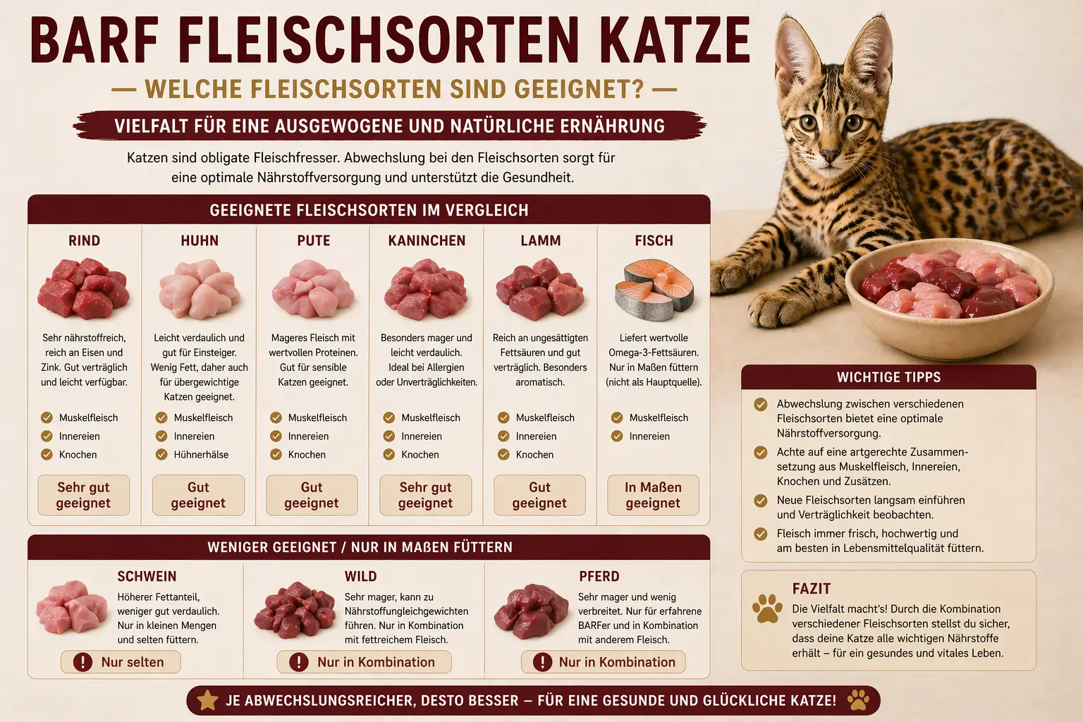 Welche Fleischsorten eignen sich am besten für BARF bei Katzen?