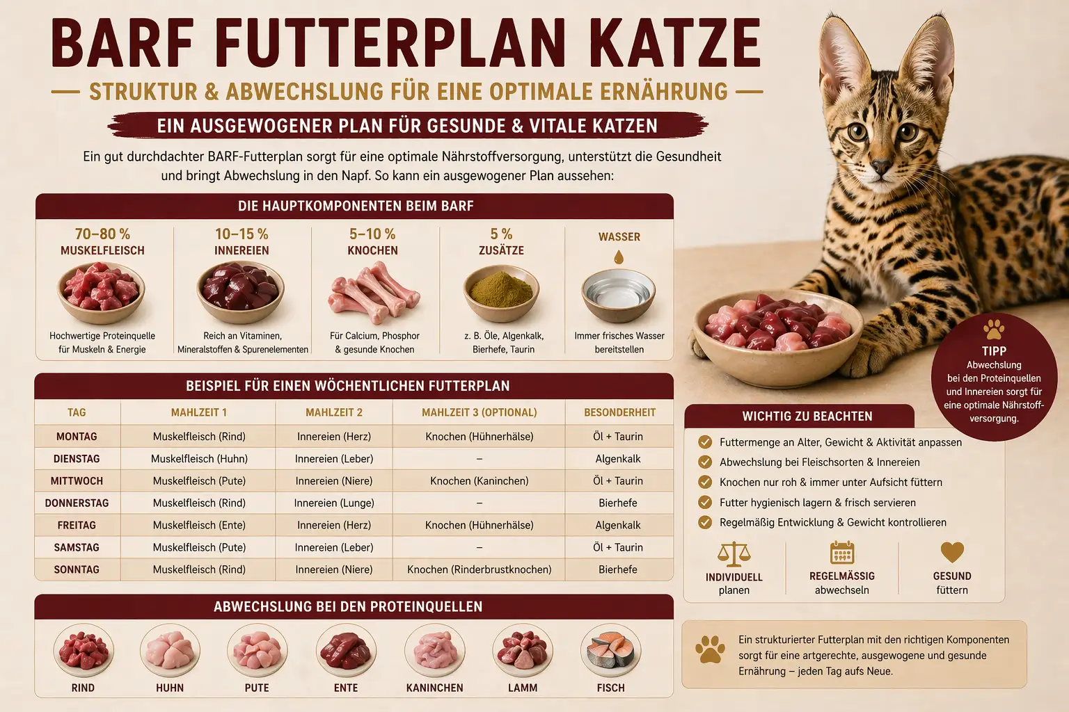 Wie erstelle ich einen ausgewogenen BARF Futterplan für meine Katze?