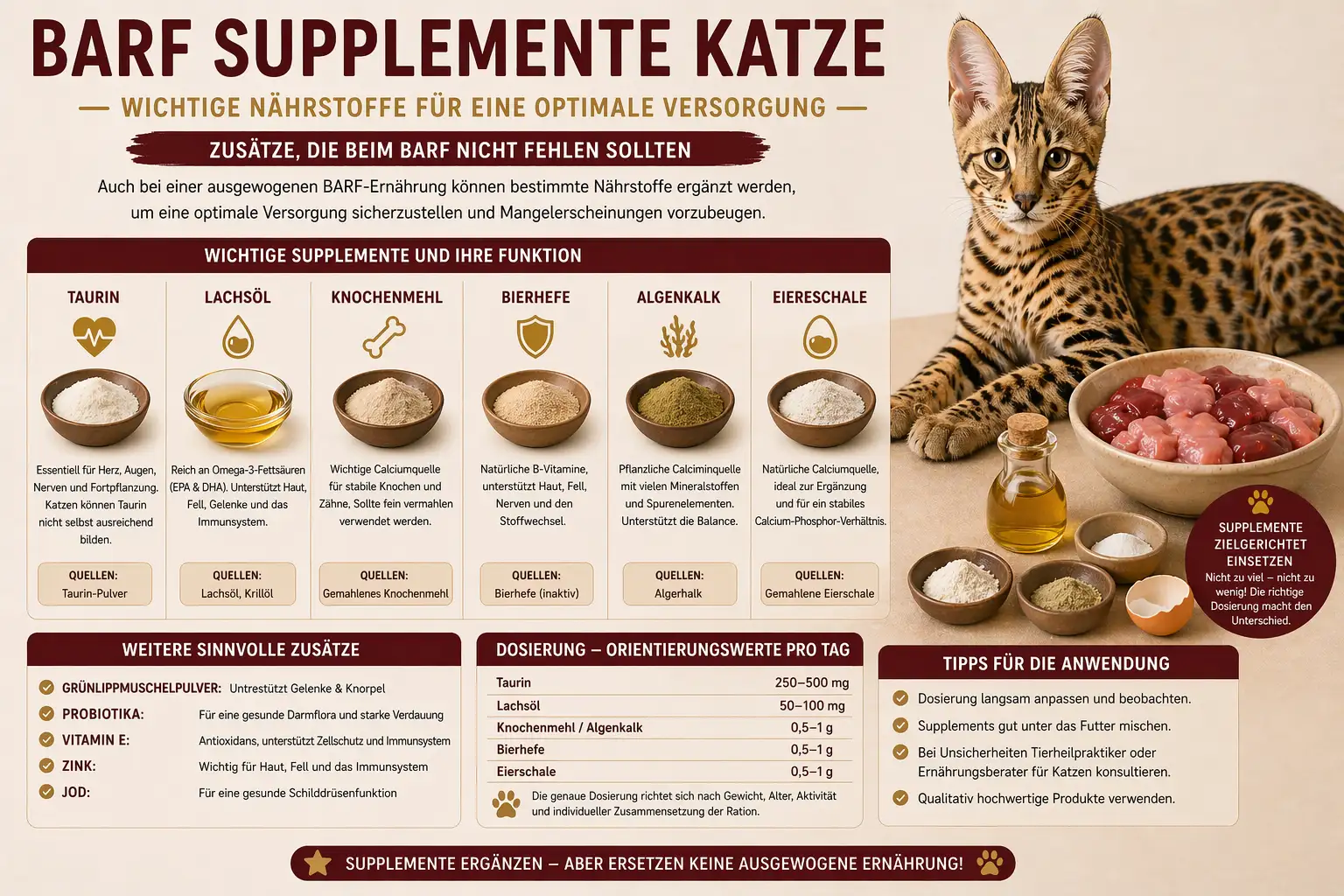Welche Supplemente sind beim BARF für Katzen notwendig?