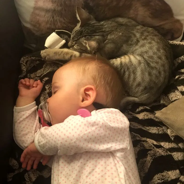 Wenn die Kinder schlafen gehen, legt sich die Savannah Katze daneben und schläft mit – wie ein kleiner Beschützer, der wacht, bis die Kinder wieder aufwachen.