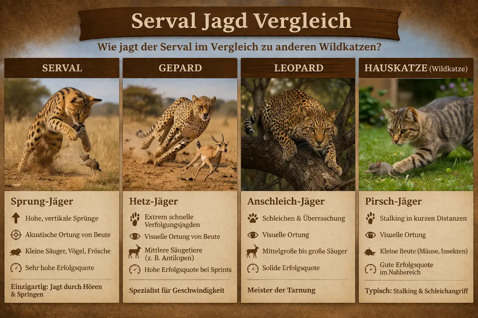 Diese Kombination sorgt dafür, dass der Serval regelmäßig erfolgreich ist, ohne unnötige Risiken einzugehen.